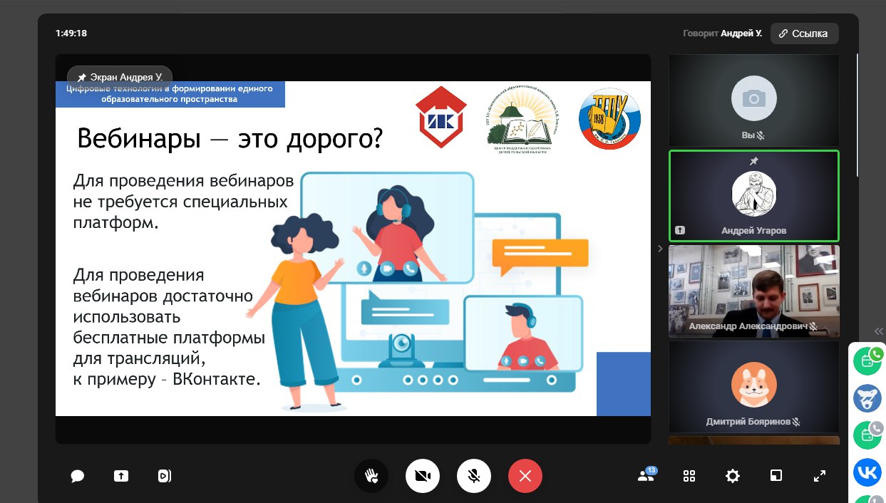 8.Угаров Андрей Сергеевич, специалист по учебно-методической работе отдела дистанционного обучения и информационного сопровождения инновационных проектов центра непрерывного повышения профессионального мастерства: «Вебинары как современная форма проведения обучающих мероприятий»