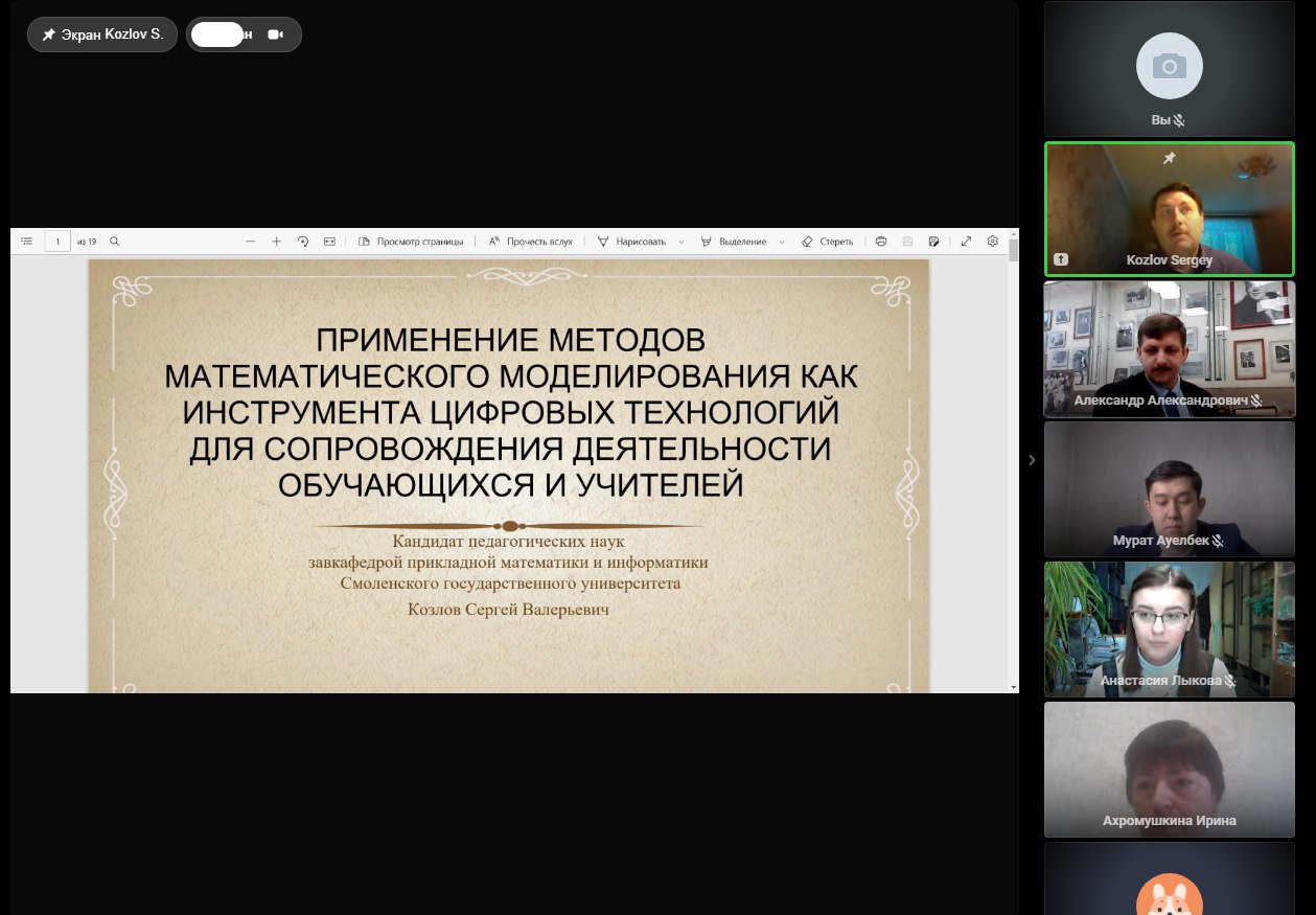 3.Козлов Сергей Валерьевич, зав. кафедрой прикладной математики и информатики, канд. пед. наук, доцент СмолГУ. «Применение методов математического моделирования как инструмента цифровых технологий для сопровождения деятельности обучающихся и учителей».