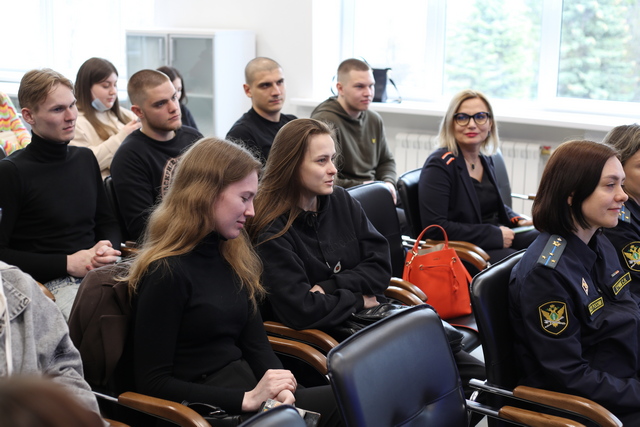 Студенты факультета истории и права, факультета русской филологии и документоведения, факультета физической культуры и факультета технологий и бизнеса познакомились с направлениями деятельности Управления, узнали о возможностях трудоустройства на различные должности, посмотрели видеоролик о служебных буднях сотрудников и смогли задать интересующие их вопросы.